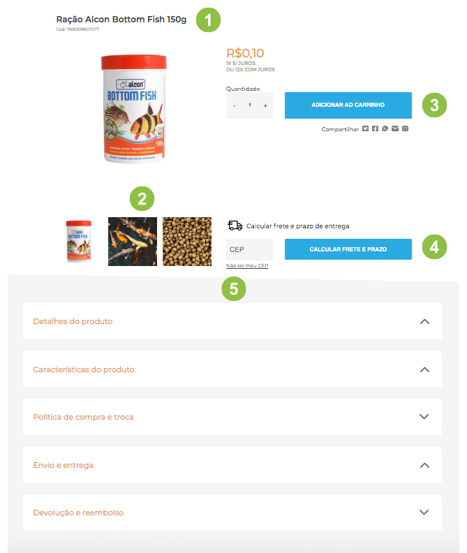 - Ainda no final da tela poderá conferir os detalhes do produto, características e garantia.